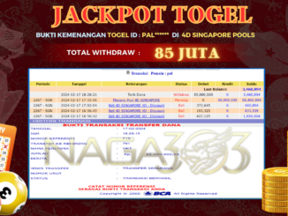 NAGA303 JACKPOT TOGEL di SINGAPORE POOLS Rp 85.000.000,- LUNAS MEMBER NAGA303 MENERIMA PELUNASAN KEMENANGAN JACKPOT TOGEL di SINGAPORE POOLS Rp 85.000.000,- LUNAS “NAGA303 Situs Togel […]