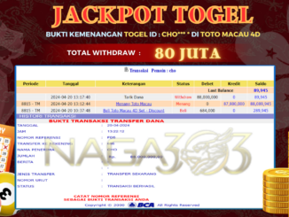 NAGA303 JACKPOT TOGEL DI TOTO MACAU 4D Rp 80.000.000,- LUNAS