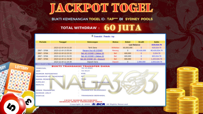 NAGA303 JACKPOT TOGEL DI SYDNEY POOLS Rp 60.000.000,- LUNAS
