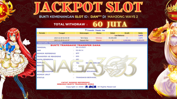 NAGA303 JACKPOT SLOT DI MAHJONG WAYS 2 Rp 60.000.000,- LUNAS