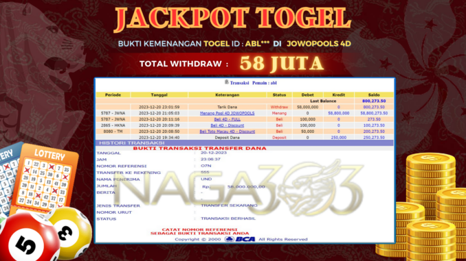 NAGA303 JACKPOT TOGEL DI JOWOPOOLS 4D Rp 58.000.000,- LUNAS