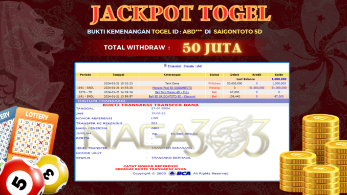 NAGA303 JACKPOT TOGEL DI SAIGON 5D Rp 50.000.000,- LUNAS