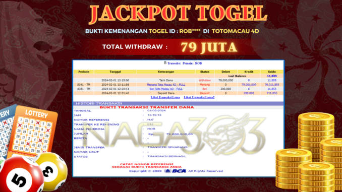 NAGA303 JACKPOT TOGEL DI TOTO MACAU 4D Rp 79.000.000,- LUNAS