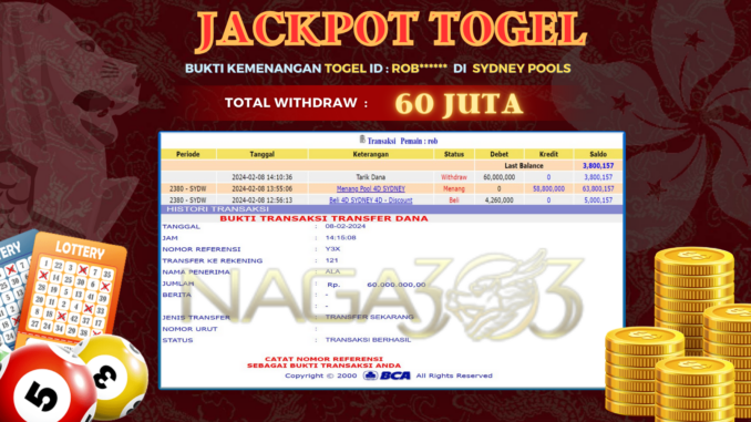 NAGA303 JACKPOT TOGEL DI SYDNEY POOLS Rp 60.000.000,- LUNAS