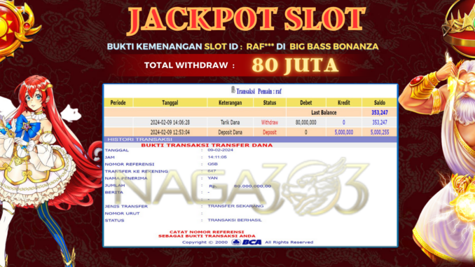 NAGA303 JACKPOT SLOT DI BIG BASS BONANZA Rp 80.000.000,- LUNAS