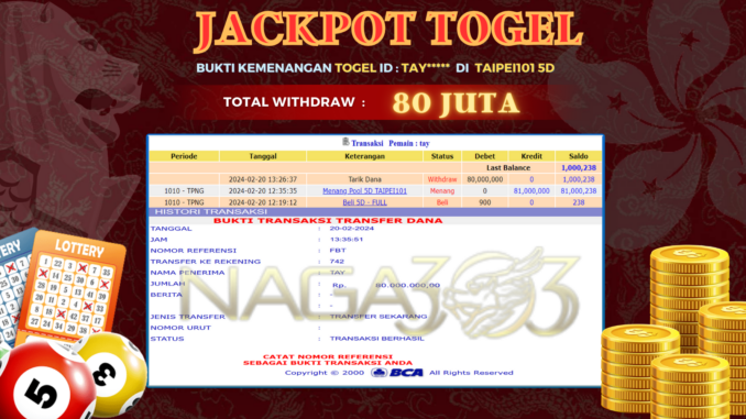 NAGA303 JACKPOT TOGEL DI TAIPEI101 5D Rp 80.000.000,- LUNAS