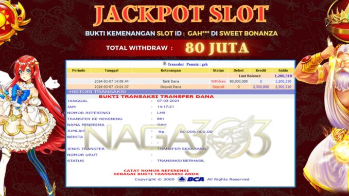 NAGA303 JACKPOT SLOT DI SWEET BONANZA Rp 80.000.000,- LUNAS