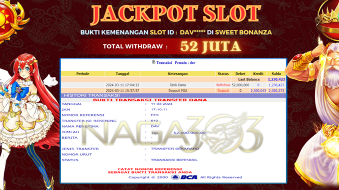 MEMBER NAGA303 MENERIMA PELUNASAN KEMENANGAN SLOT DI SWEET BONANZA Rp 52.000.000,- LUNAS