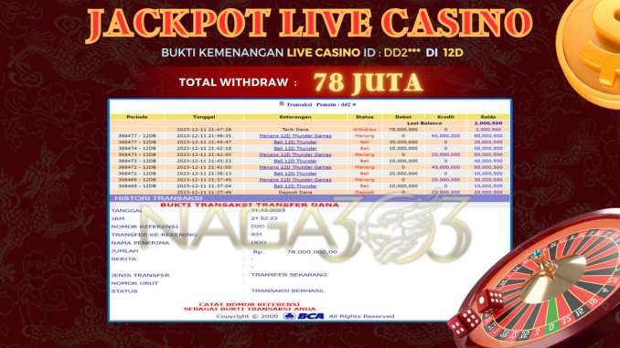 NAGA303 JACKPOT LIVE CASINO DI 12D Rp 78.000.000,- LUNAS