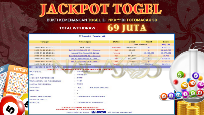 NAGA303 JACKPOT TOGEL TOTOMACAU 5D POOLS RP. 75.000.000,- LUNAS