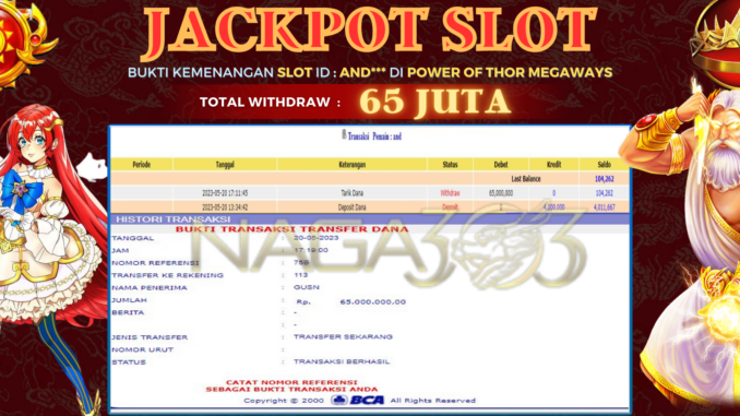 NAGA303 JACKPOT SLOT POWER OF THOR MEGAWAYS RP 65.000.000,- LUNAS