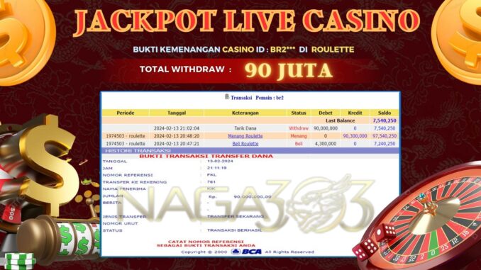 MEMBER NAGA303 MENERIMA PELUNASAN KEMENANGAN JACKPOT LIVE CASINO DI ROULETTE RP 90.000.000,- LUNAS
